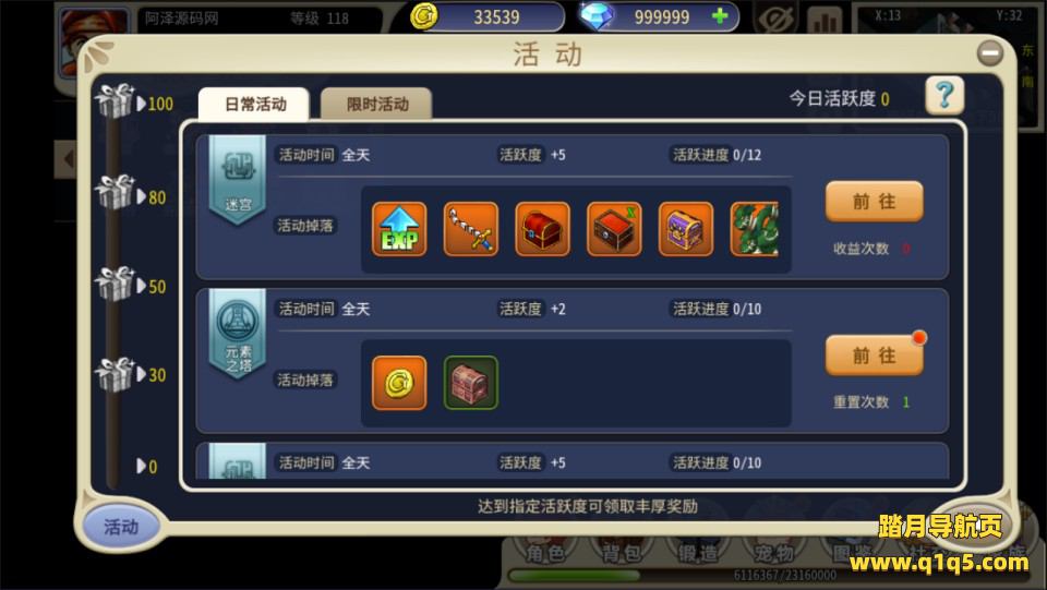 3.新增活动:蜗牛的快递、异界袭击、悬赏任务、星空之塔、挑战GM、百人道场!
