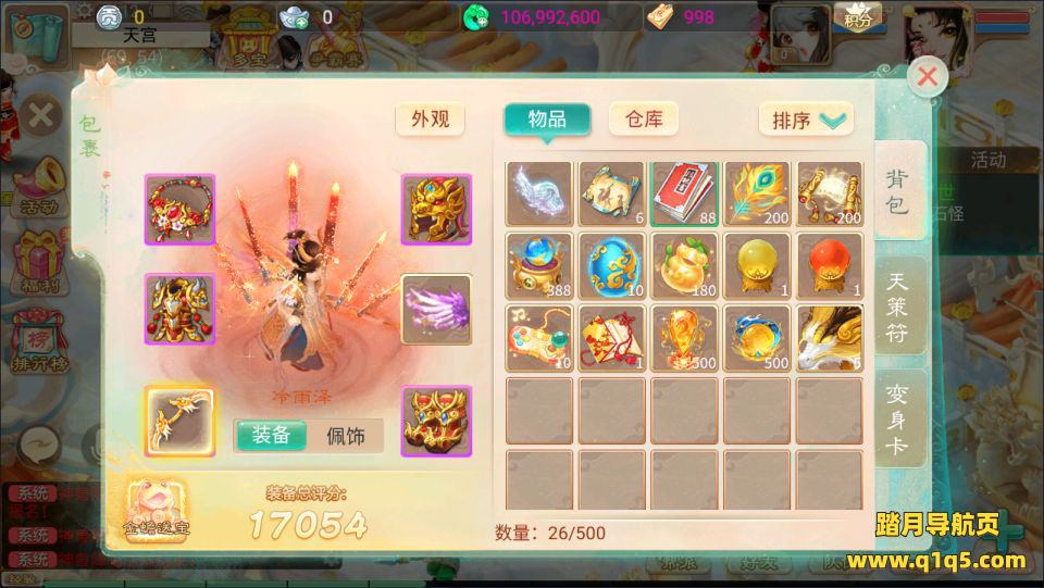 3.增加人物潜能丹、宠物潜能丹、全套+10天策符道具等常用便利道具