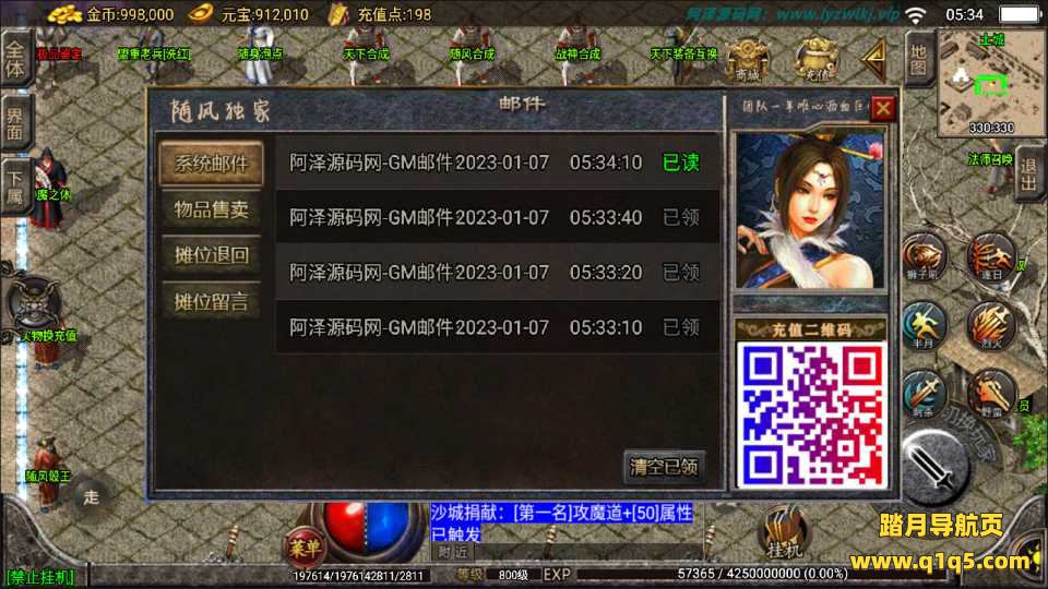 战神引擎传奇手游【1.80随风大极品】1月最新整理Win一键服务端+GM后台+安卓苹果双端+详细搭建教程