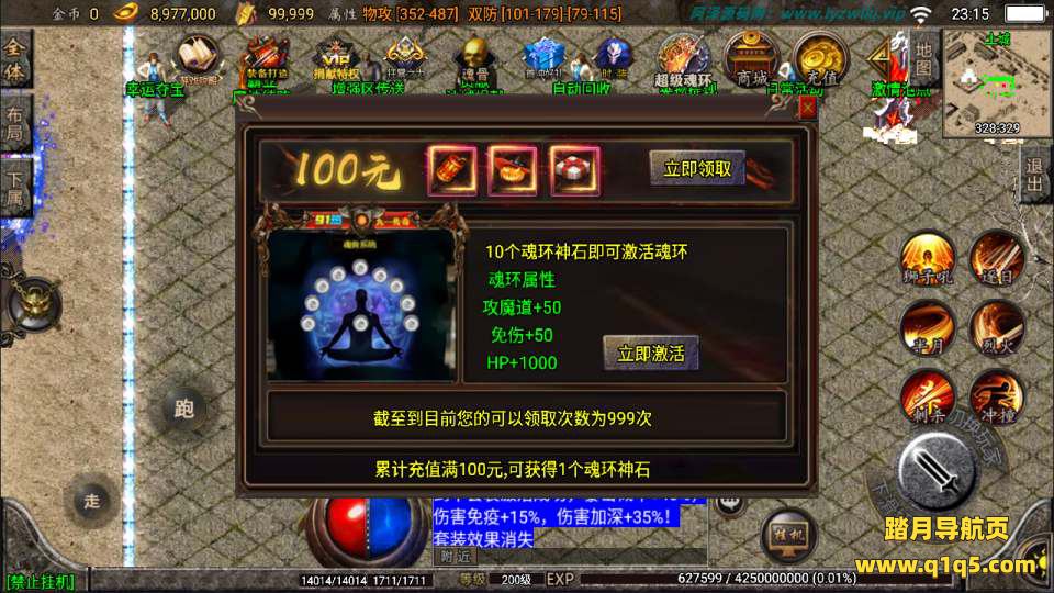 第九大陆NPC提示可爆出至尊炎龙碎片,功能方面,魂环、转生、魂骨、时装等!
