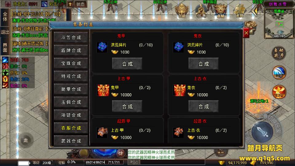 17:合成系统:斗笠,护盾,宝珠,麻痹,复活,玉佩,项链,武器,衣服(碎片或元宝合成)