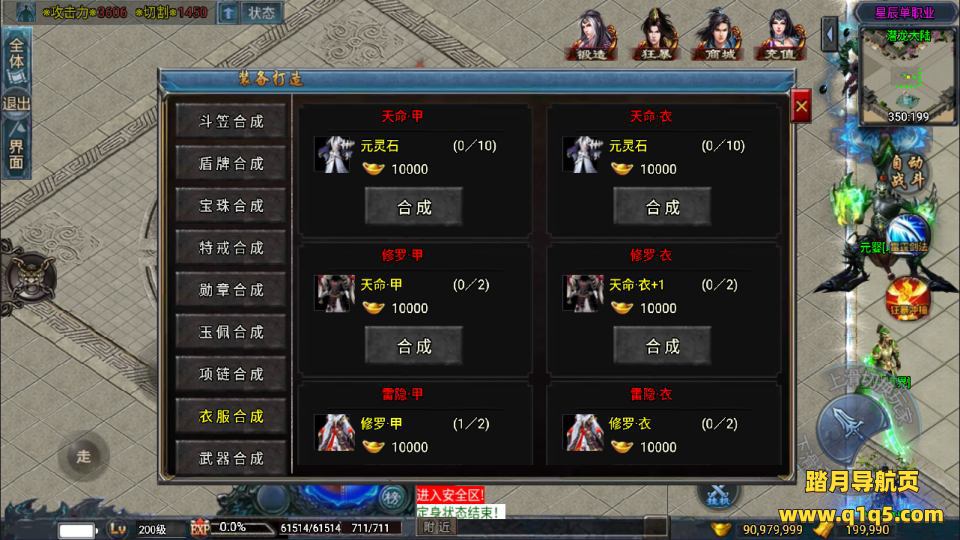 17:怪物:第5大陆、8个BOSS/地图、爆(天命、修罗、雷隐、赤霞、龙皇装备)