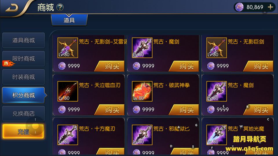2、新增积分商城80荒古·神·真·武器和大马猴天神袖珍罐