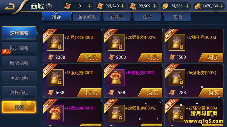 1、新增道具商城强化卷16-30、积分商城积分、月卡